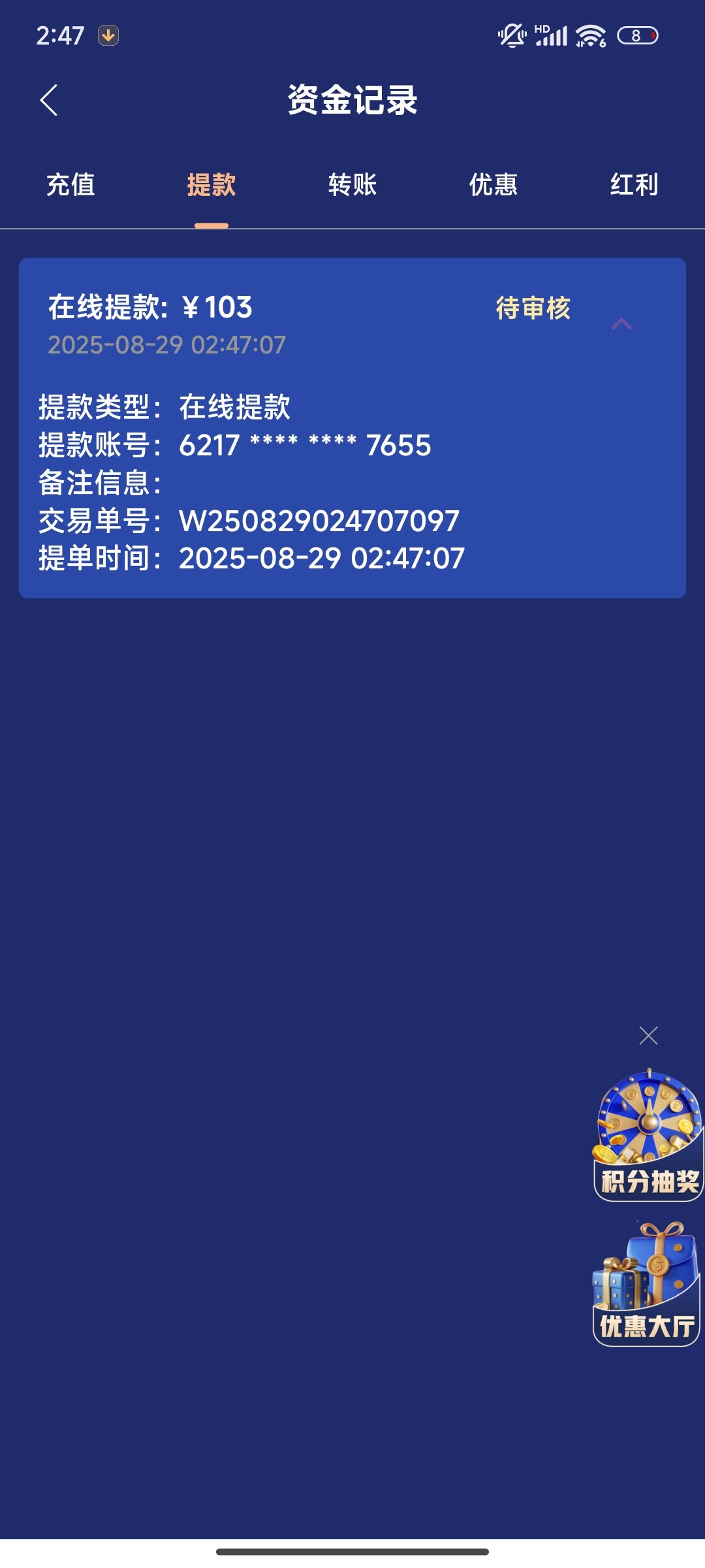 这个台子水太大了,不要不要的来,28块打到400多。。。这游戏跟不要钱一样,妈的,就是只能提103,不知道给不给出了,剩下的咋办?不给提就当欢乐豆玩还是狗庄要回收了?