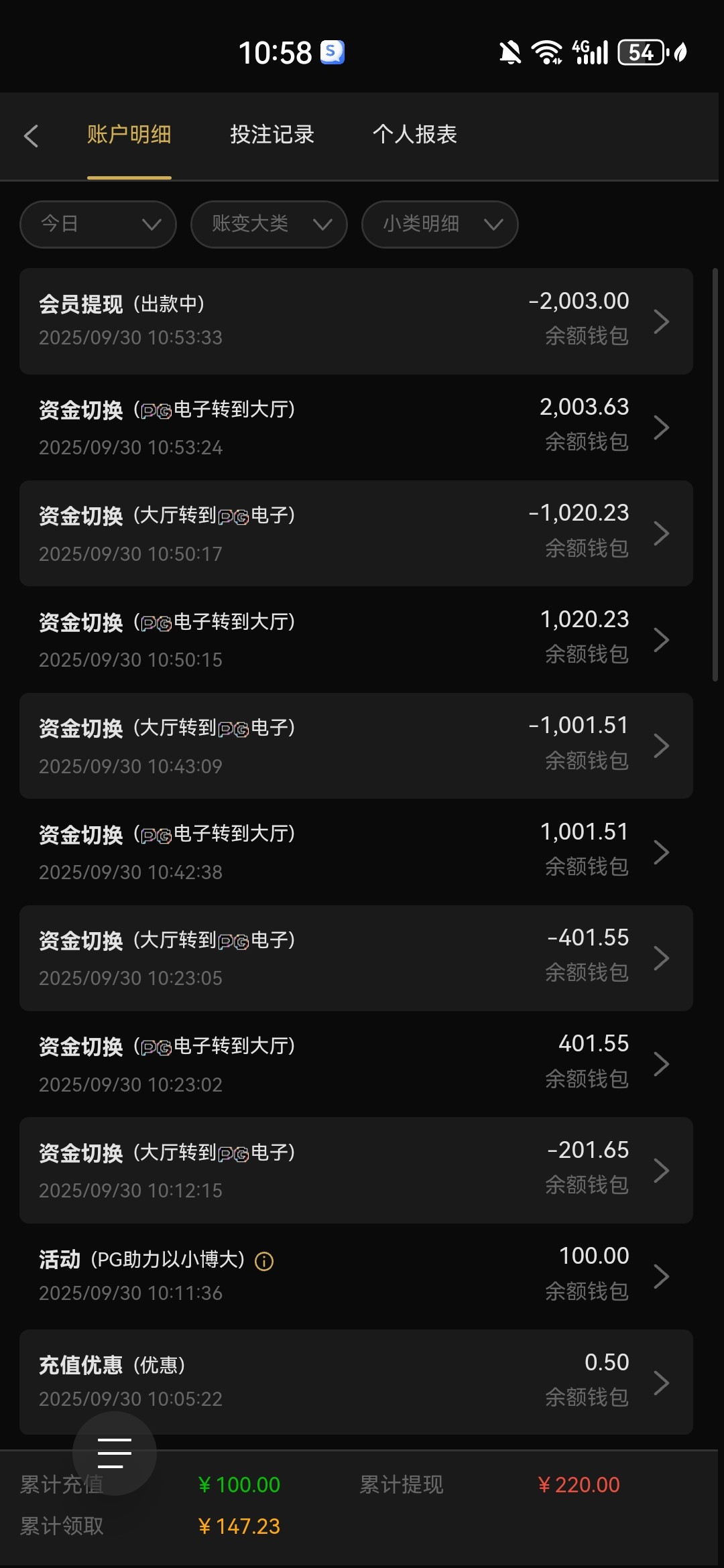 722国庆送22打到220提出,然后充100送100